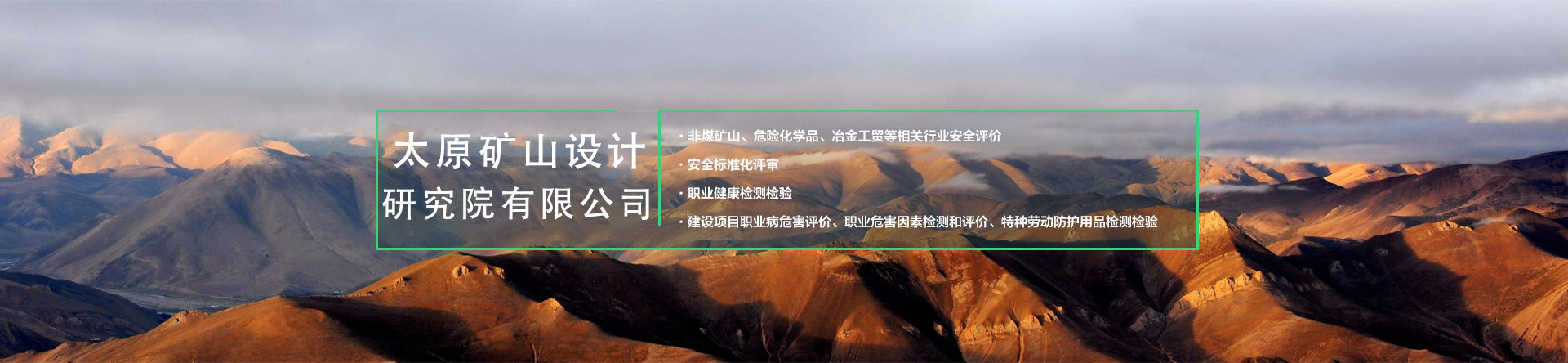 公司主要從事礦山采選尾工程設(shè)計(jì)、智能化及自動(dòng)化礦山、建設(shè)綠色礦山、工程技術(shù)咨詢、規(guī)劃設(shè)計(jì)管理、施工勞務(wù)分包、土地規(guī)劃、地質(zhì)災(zāi)害治理服務(wù)、安全生產(chǎn)技術(shù)服務(wù)、軟件開發(fā)及測(cè)繪服務(wù);煤礦、非煤礦山設(shè)計(jì);煤礦、非煤礦山、危險(xiǎn)化學(xué)品安全評(píng)價(jià)(業(yè)務(wù)范圍:煤炭開采業(yè);金屬、非金屬及其他礦采選業(yè);石油加工業(yè),化學(xué)原料、化學(xué)品及醫(yī)藥制造業(yè));非煤礦山、冶金等工商貿(mào)企業(yè)、危險(xiǎn)化學(xué)品從業(yè)單位安全生產(chǎn)標(biāo)準(zhǔn)化評(píng)審;公共場(chǎng)所衛(wèi)生、生活飲用水、公共場(chǎng)所集中中央空調(diào)通風(fēng)系統(tǒng)的檢驗(yàn)、檢測(cè)、評(píng)價(jià);職業(yè)健康檢測(cè)檢驗(yàn);建設(shè)項(xiàng)目職業(yè)病危害評(píng)價(jià)、職業(yè)危害因素檢測(cè)與評(píng)價(jià);安責(zé)險(xiǎn)技術(shù)服務(wù);業(yè)務(wù)培訓(xùn)等工作。